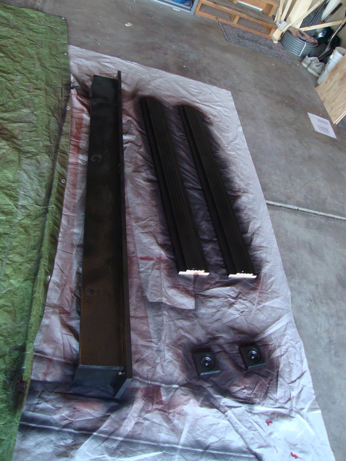 I put the parts together as much as I could and then sanded and primed it. I chose a brown primer so that I could sand the black paint down and have the rich brown showing through. Then I painted it black. When it was dry I sanded it and assembled it.