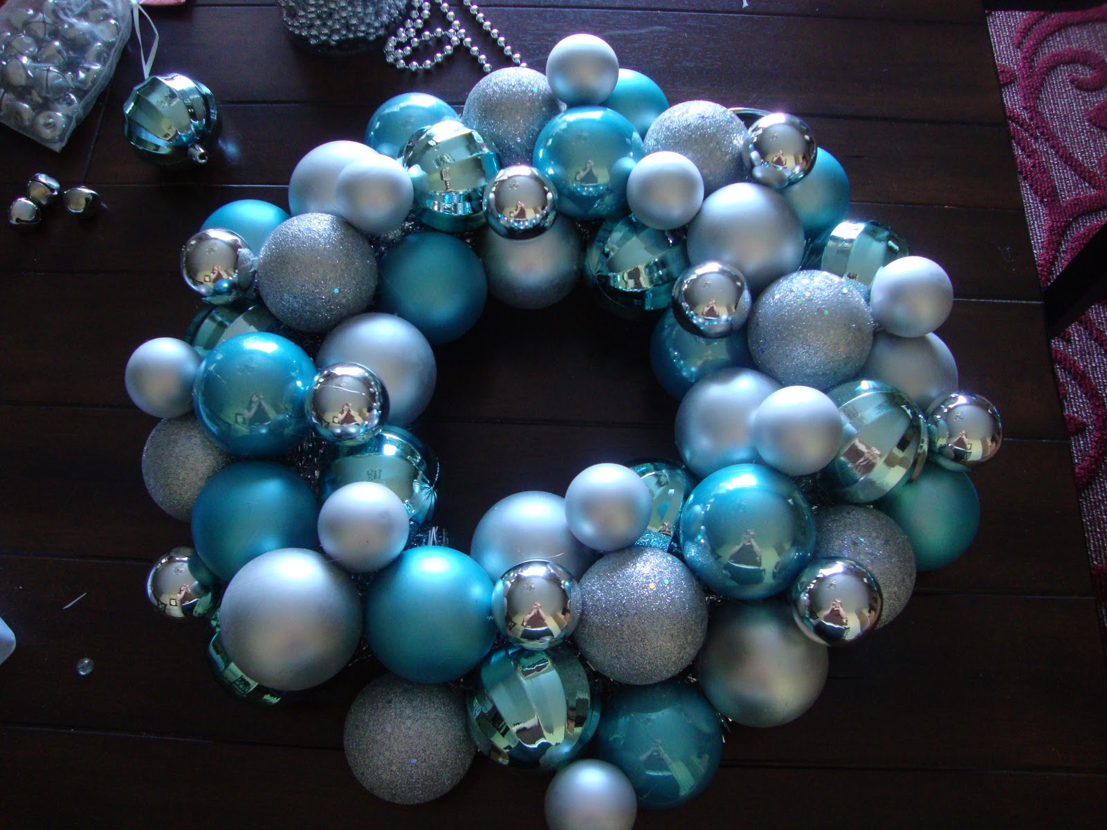 Oh so pretty! I LOVE the blue and silver…totally winterizes it 🙂 I made an ornament wreath myself but I am thinking I need to add some beads and jingle bells! Thanks for sharing…it’s beautiful!