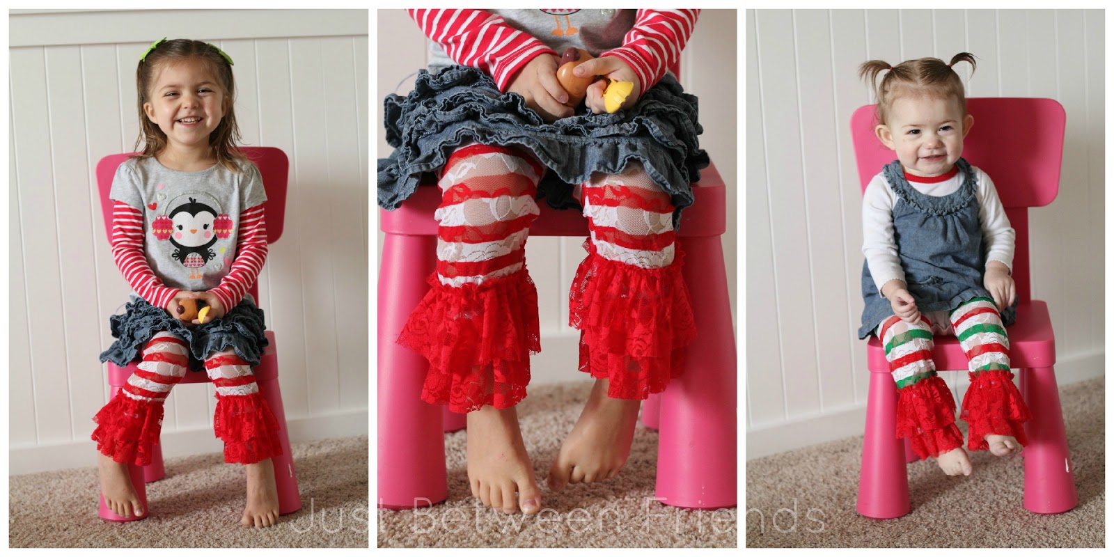 These lace leggings are so stinking cute!  I am thinking that these are the outfits my girls will wear on Christmas Day after all of the presents are opened at our house and we head to visit family.  They are good quality and very brightly colored.  I didn’t edit these photos at all!