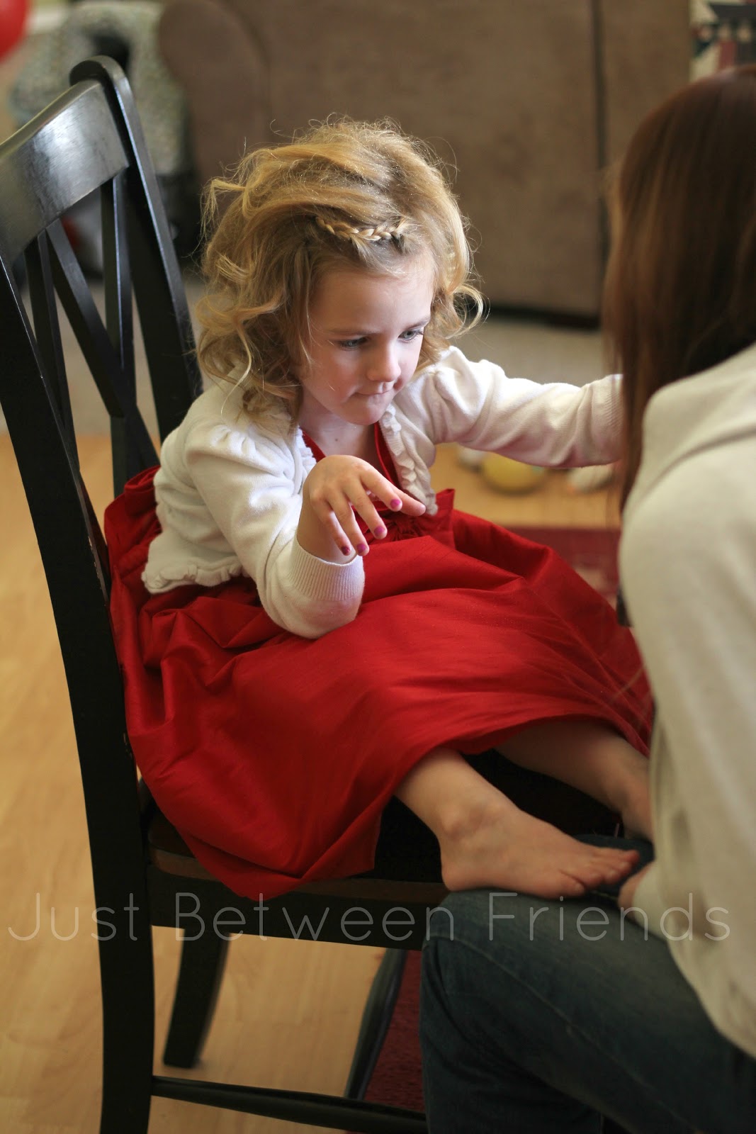 They each were able to choose their favorite color of nail polish to get their fingernails and toenails painted with.  It was fun to see if they would choose a color or a glitter polish.  Marcy provided all the polish and had glitter hairspray for their hair and even had glittery bobby pins for each girl.