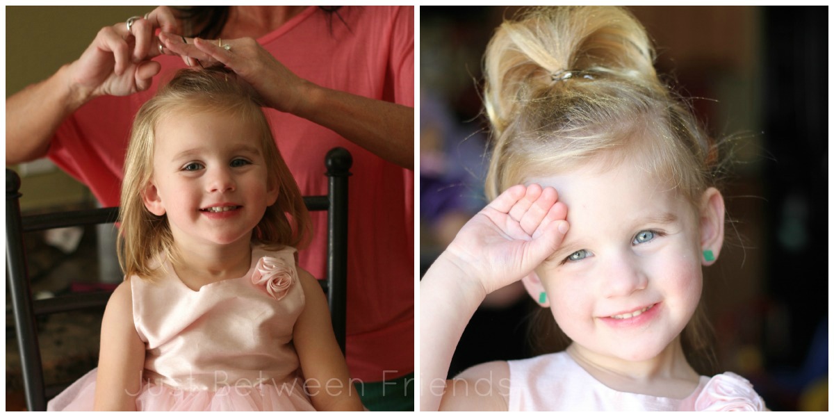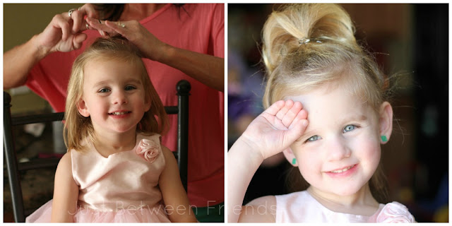 My hairdresser, Marcy,  does mobile parties where she comes to your house and does the hair, nails, and make up for any occasion.  This was perfect for our Princess Party and the girls were THRILLED that they were able to be primped and pampered like a real Princess.