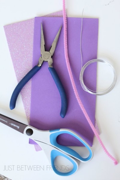 - Craft Foam (I got mine at Walmart. The glitter foam has an adhesive side which made these even easier to make. I recommend finding a foam with the adhesive.)