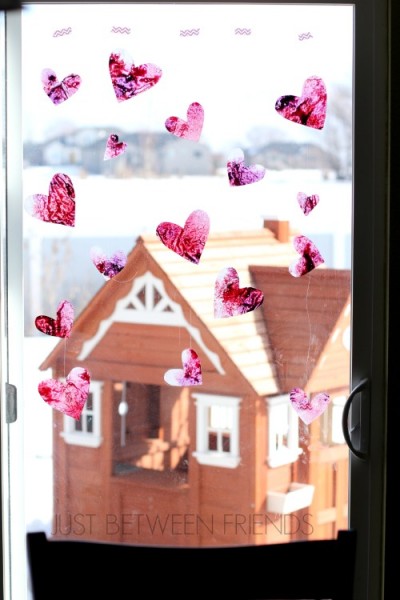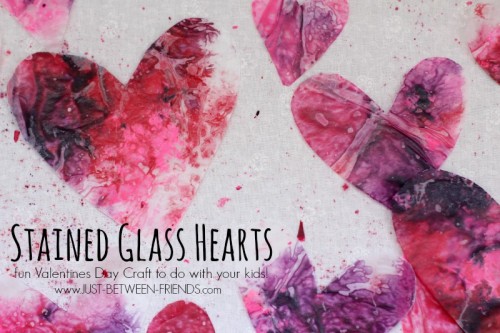 I love decorating for Valentines Day.  Maybe it’s because I have a house full of girls and we finally have an excuse to put up some pink.  Whatever the reason, I like to have my kids be involved in the decorations.  I wanted to share with you this fun Valentines Day craft for kids that I like to also use for decoration!  These stained glass hearts are so easy to make and I love the way they look hanging in my window.