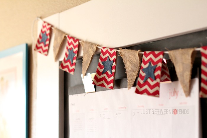 When I originally made my Command Center, it was the beginning of the summer. I know, I know. Why has it taken me so long to post about it?! Well, I have plenty of reasons or excuses, but instead of giving them to you, I am going to give you a patriotic banner tutorial. I thought it would be fun to hang banners on my command center and change them with the holidays. I am SO SO excited to show you the one I have for back to school and my Halloween one is going to be my favorite. I can already tell even if I haven’t made it yet. 🙂 Anyway, I promise to show them to you before the actual holiday this time, which means the back to school one is coming up quick.