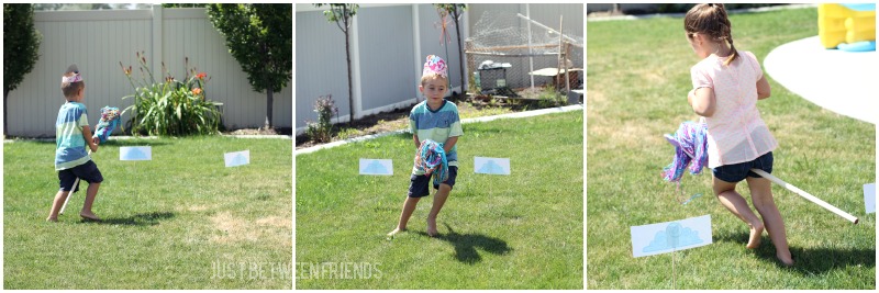 I gave each of the kids a stick horse, (tomorrow I will be sharing the stick horses with you. I am kind of proud of those) and then set up the course. Rainbow Dash flies up in the clouds, so I made some cloud printables, printed them out and stuck them on dowels. These became the obstacles. The kids had to run between the clouds, zig-zagging down the yard and then back. I didn’t want to have to worry about hurt feelings, so instead of a race, this was just an obstacle course to see if they could complete the task. The kids thought it was a blast!