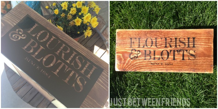 To finish off the crate, I wanted to stencil something on the front of it to make it look like shipping crate of some kind. Here is where you will get bonus points if you know where Flourish & Blotts comes from without me telling you. If you don’t already know, it is from Harry Potter and is the name of the bookstore. I really liked the name and I also liked the idea of using the name for the crate so that it is kind of Halloween-ish but not glaringly in-your-face Halloween so that I can use it whenever I want. I used my Cricut Explore to cut out some vinyl and stenciled it onto the box using acrylic paint. After the lettering dried, I sanded it a little bit and then sprayed it with a clear coat to make it resistant to water.