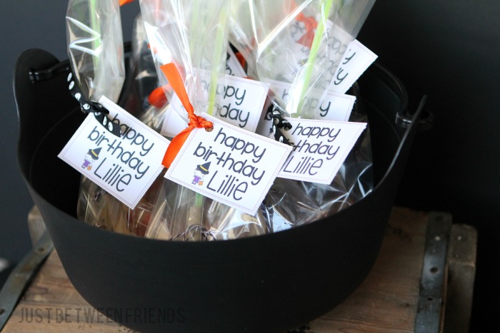 To finish off the whole look, I needed a tag. I designed these fun Happy Birthday tags for Lillie and let her tell me the colors that she wanted to use. Then I printed them off, punched a hole in the top corner and added them to the packaging. I think they are the perfect little finishing touch. Come back tomorrow and I will give you the free printable for these tags, plus show you how to customize it to have any name you want! I will also have some Happy Halloween versions to share.