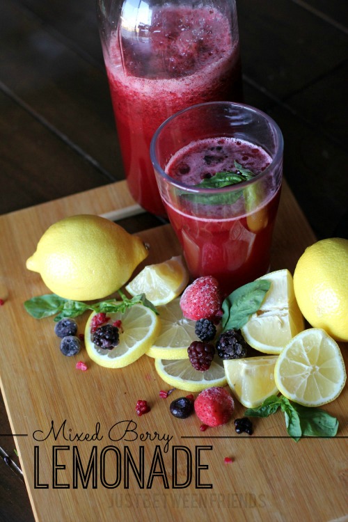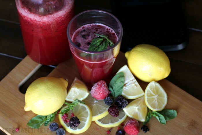 Since the berries weren’t completely defrosted, the puree helped to chill the lemonade and it was tasty! For a party, just add some mint or basil leaves to garnish the top of the drink. The color contrast between the drink and the crisp green herbs is beautiful!