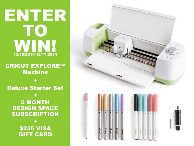The Fine Print: One winner will receive a Cricut Explore Machine and additional items as listed above. You must be a US resident and 18 years of age or older to enter. One person per entry. Entry includes filling out the Rafflecopter form above. Winner will be chosen at random and will be notified within 24 hours of giveaway close via email and must reply within 24 hours or a new winner will be chosen. No purchase necessary. Giveaway ends at 2am EST on December 17, 2014. This giveaway is in no way affiliated with Facebook, Pinterest nor Instagram.