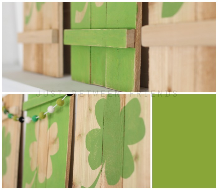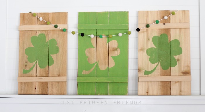 It was about this time last year that I had found out that I was pregnant and was going through blood draws and taking progesterone trying to find out if I had miscarried again, or if I had a viable pregnancy. It was a tough time for me, and a very busy time! On top of all of that pregnancy stress, I was also in charge of planning a party for the launch of the Cricut Explore machine (which is awesome, by the way) and I was feeling overwhelmed to say the least. I was talking with a friend of mine about all of the things that were happening in my life, and the next thing I knew, she was at my house helping me. I had mentioned to her that I just wanted everything to look just right at my house, but that my mantle was completely empty. I knew what I wanted, I just didn’t have the time or energy to do it. My friend used what I said to her and created these amazing Shamrock Shutters for me that I will love forever.
