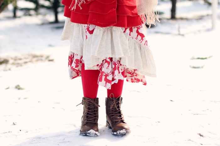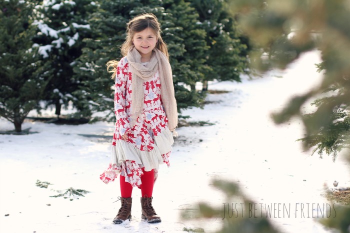 I had never heard of Little Skye Kids’ Boutique Clothing before this last month, but now that I know about it, I am officially hooked. The vintage vibe and vibrant colors in their clothing are so appealing to me. I chose this Festive Reindeer Ruffled Dress from the Paper Wings collection, and I LOVE IT! It is so well made, soft, warm, and so dang cute!